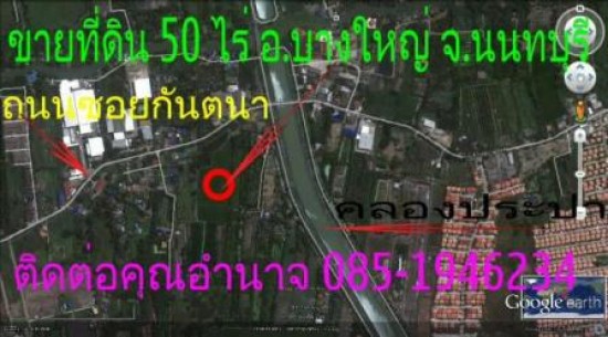 ขายที่ดิน 50ไร่ ติดถนนซอยกันตนา ถนนกาญจนาภิเษก อ.บางใหญ่ จ.นนทบุรี จากถนนกาญนาเพียง 3.8 กม.ที่ดินเหมาะทำโครงการขายไร่ละ 3.5 ล้าน และโซนในซอยนี้เหลือแปลงใหญ่ติดถนนอยู่แปลงเดียวการเดินทางสะดวกสามารถออกซอยวัดพระเงินได้ ใกล้โรงพยาบาลบางใหญ่เพียง 4 กม. ,ห่างจากสถานีรถไฟฟ้าบางใหญ่เพียง 8 กม. ,ห้างบิ๊กซีบางใหญ่เพียง 7 กม. ,ห่างจากโลตัสสาขาพระราม 5 เพียง 6 กม. การเดินทางสะดวกสามารถออกถนนรัตนาธิเบศได้ ,ถนนพระราม 5(นครอินทร์)ได้,ออกถนนวงแหวนตะวันตก,ถนนบรมราชชนนีได้ สนใจติดต่อคุณอำนาจ 085-1946234 คุณธีรภัทร(ตุ้ย) 089-0619130 http://www.tplandhouse.com ศูนย์บริการรับฝากขาย บ้าน ที่ดิน ขายฝาก ซื้อ เช่า โฆษณา รับถมที่ดิน ฟรีโฆษณา