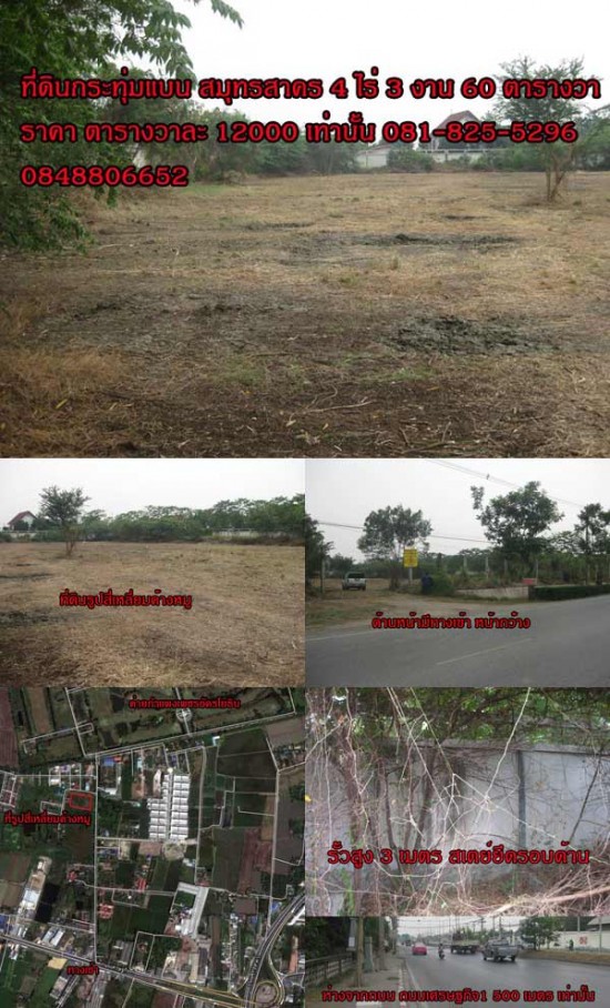 ดินกระทุ่มแบน สมุทรสาคร บนโฉนดที่ดินเนื้อที่ 4-3-60 ไร่ จากถนนเศรษฐกิจ1 ประมาณ 500 เมตรเท่านั้น