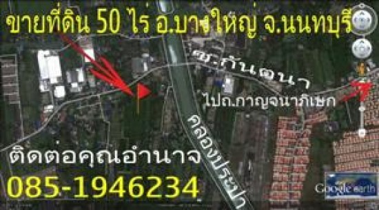 ขายที่ดิน 50ไร่ ติดถนนซอยกันตนา ถนนกาญจนาภิเษก อ.บางใหญ่ จ.นนทบุรี จากถนนกาญนาเพียง 3.8 กม.ที่ดินเหมาะทำโครงการขายไร่ละ 3.5 ล้าน และโซนในซอยนี้เหลือแปลงใหญ่ติดถนนอยู่แปลงเดียวการเดินทางสะดวกสามารถออกซอยวัดพระเงินได้ ใกล้โรงพยาบาลบางใหญ่เพียง 4 กม. ,ห่างจากสถานีรถไฟฟ้าบางใหญ่เพียง 8 กม. ,ห้างบิ๊กซีบางใหญ่เพียง 7 กม. ,ห่างจากโลตัสสาขาพระราม 5 เพียง 6 กม. การเดินทางสะดวกสามารถออกถนนรัตนาธิเบศได้ ,ถนนพระราม 5(นครอินทร์)ได้,ออกถนนวงแหวนตะวันตก,ถนนบรมราชชนนีได้ สนใจติดต่อคุณอำนาจ 085-1946234 คุณธีรภัทร(ตุ้ย) 089-0619130 http://www.tplandhouse.com ศูนย์บริการรับฝากขาย บ้าน ที่ดิน ขายฝาก ซื้อ เช่า โฆษณา รับถมที่ดิน ฟรีโฆษณา