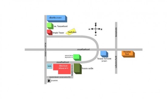 ด้านข้าง (ทิศใต้) ติดกับบริษัท นิสสัน ถนนบางนา-ตราด ประมาณ กม. 4