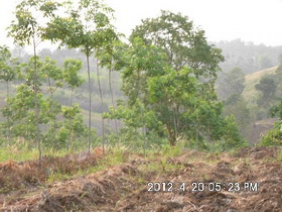 - ที่ดินแปลงนี้ปลูกยางพาราเต็มพื้นที่ มีต้นยางพาราอายุประมาณ 4-5 ปี ประมาณ 34,000ต้น ขนาดวัดรอบต้นเฉลี่ย 25ซม. อุดมสมบูรณ์ดีมาก พันธ์ยางที่ปลูกคือ 600 บ้านพักคนงาน 2 หลัง
