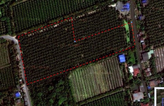 ตลาดน้ำดำเนินสะดวก ด้านหลังติดถนนลาดยาง ดังที่เห็นในภาพถ่ายดาวเทียม เหมาะสำหรับทำรีสอร์ท โฮมสเตย์ หรือจัดสรร