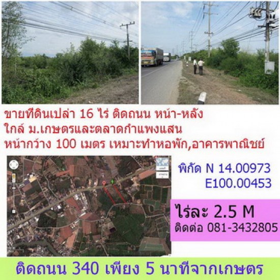 ขายที่ดิน16ไร่ ติดถนนใกล้ ม.เกษตรและตลาดกำแพงแสน
