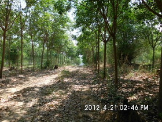 - ที่ดินแปลงนี้ปลูกยางพาราเต็มพื้นที่ มีต้นยางพาราอายุประมาณ 8-9 ปี ประมาณ 12,800 ต้น ขนาดวัดรอบต้นเฉลี่ย 55 ซม. อุดมสมบูรณ์ดีมาก พันธ์ยางที่ปลูกคือ 600