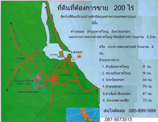 1.ขายที่ดินโครงการจัดสรร 200 ไร่ ติดเขตอุตสาหกรรมฉลุง จังหวัดสงขลา