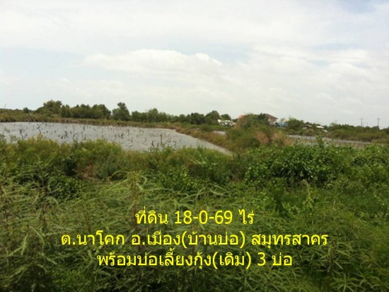 ขายที่ดินเปล่า พร้อมบ่อเลี้ยงกุ้ง(เดิม) 3 บ่อ 18-0-69 ไร่ ต.นาโคก อ.เมือง(บ้านบ่อ) สมุทรสาคร