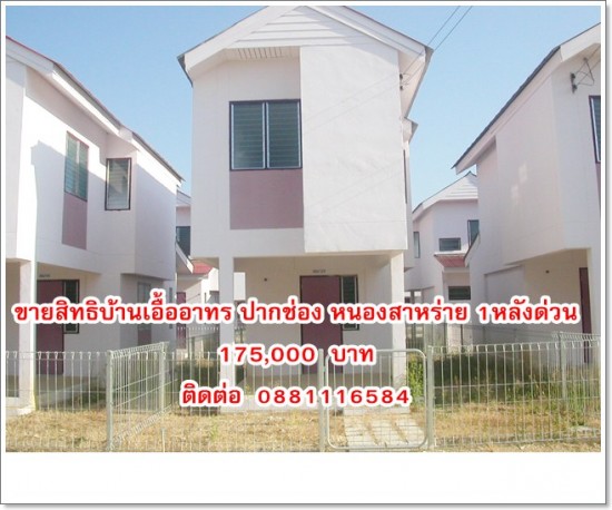 ขายสิทธิบ้านเอื้ออาทร ปากช่อง หนองสาหร่าย 1หลังด่วน 175,000 บาท