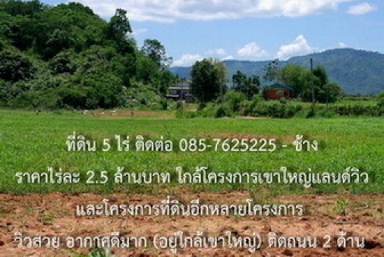 ที่ดินบ้านท่าช้างใต้ หมูสี ปากช่อง นครราชสีมา ใกล้โครงการเขาใหญ่แลนด์วิวเพียง 400 เมตร และโครงการที่ดินอื่นๆ อีกหลายโครงการ - มองเห็นวิวเขาใหญ่ใกล้ๆและเขาอื่นรอบๆ แปลงที่ดิน ขนาดที่ดิน 5 ไร่ ราคาไร่ละ 2.5 ล้านบาท