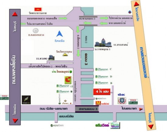 ดิน 4 ไร่เศษ ติดคลองสาม จากถนนรังสิต-นครนายก เพียง 800 เมตรไกล้หมู่บ้านจัดสรร และแหล่งสาธารณูปโภคมากมาย เช่น ห้างบิ๊กซี โลตัส ฟิวเจอร์ 3-8 กม.ไกล้รพ.เอกปทุม ม.sbac การคมนาคมสะดวก เพราะอยู่ไกล้ทางด่วนมอเตอร์เวย์ และโทลเวย์ดอนเมือง แวดล้อมไปด้วยหมู่บ้านจัดสรรมากมาย เช่นพฤกษาวิลล์ ภัสสร คาซาวิล์ ฯลฯ