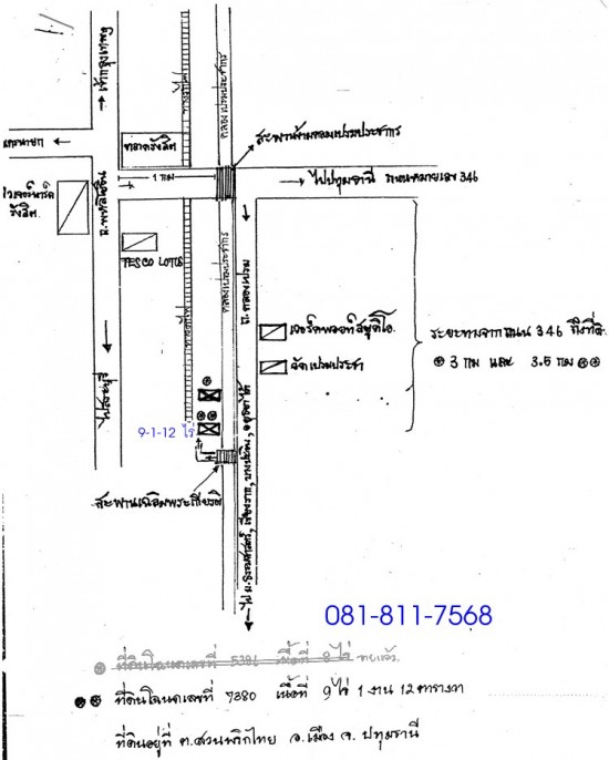 ขายถูก ที่ดิน 9-1-12 ไร่ ใกล้สถานีรถไฟรังสิต ถนนวัดคลองเปรมประชา ทางไปเวิร์คพ้อยท์ รังสิต