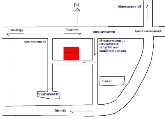 ขายที่ดิน ซอยเพชรเกษม91 เนื้อที่ 27 ไร่ หน้ากว้างประมาณ 160 เมตร ลึกประมาณ 180 เมตร ถนนกว้าง ระยะทางจากปากซอยเพชรเกษม91 ถึงที่ดิน ประมาณ 800 เมตร ซอยนี้สามารถทะลุไปถนนพุทธสาครได้ ไปอ.กระทุ่มแบนได้ ไปเพชรเกษม 93ได้ เหมาะสำหรับ ทำโรงงาน ,โกดัง ,หมู่บ้านจัดสรร ฯลฯ