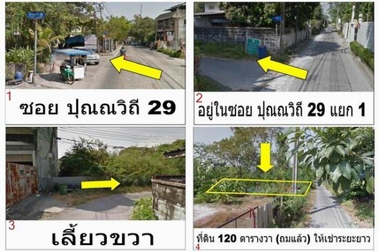 ให้เช่าที่ดินระยะยาว 120 ตารางวา ซอยปุณณวิถี 29 แยก 1 (สุขุมวิท 101)