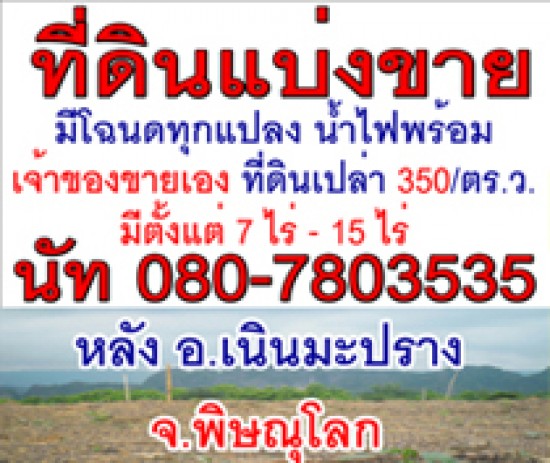 หลัง อ.เนินมะปราง จ.พิษณุโลก 250บาท/ตรว.(ยกแปลง)ขายด่วน!!!