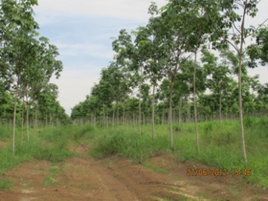 - ที่ดินแปลงนี้ปลูกยางพาราอายุ 6 ปี ประมาณ 4,550 ต้น ใช้พันธุ์ยาง 600 เป็นภบ.ท.5 70 ไร่
