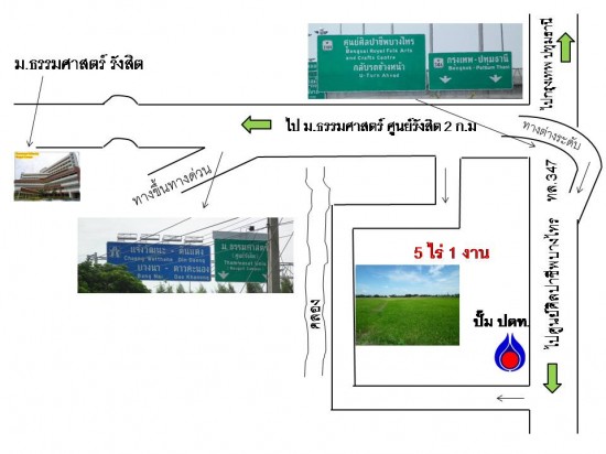 ขายที่ดิน 5 ไร่ 1 งาน ใกล้ ม.ธรรมศาสตร์ รังสิต ใกล้ทางด่วน ( ไร่ละ 6.8 ล้าน )