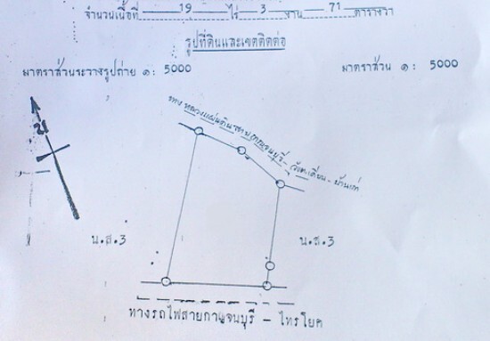 ขายที่ดินทำเลดี ด้านหน้าติดถนน กาญจนบุรี-บ้านเก่า ด้านหลังติดทางรถไฟ 19-3-71 ไร่