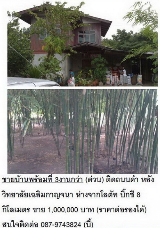 ขายบ้านพร้อมที่ 3งานกว่า (ด่วน) ติดถนนดำ หลังวิทยาลัยเฉลิมกาญจนา ห่างจากโลตัท บิ๊กชี 8 กิโลเมตร ขาย 1,000,000 บาท (ราคาต่อรองได้) สนใจติดต่อ 087-9743824 (บี้)
