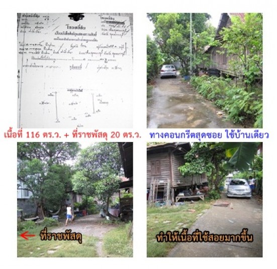 ขายที่ดินมีโฉนด 116 ตร.ว. และพื้นที่ใช้สอยเป็นที่ราชพัสดุอีก 20 ตร.ว. ที่ดินตั้งอยู่ด้านหลัง ธกส.สุพรรณบุรี เข้าซอยหลัง ธกส. ห่างถนนพระพันวษา 300 เมตร มีทางคอนกรีตเข้าออกสะดวกสบาย ออกตลาดสดแค่ 300 เมตร รถเมลล์วิ่งผ่านหลายสาย เหมาะสำหรับทำหอพัก บ้านเช่า อพาร์ตเมนท์ หรือซื้อเก็งกำไร ในอนาคตราคาสูงขึ้นแน่นอน ขายพร้อมบ้านไม้สักเก่าทรงไทยเดิม 3ห้องนอน 1ห้องน้ำ สามารถเข้าอยู่ได้ทันที มีพื้นที่ปลูกผักได้นิดหน่อย ราคา 4.2ล้านบาท ต่อรองกันได้ เจ้าของขายเอง