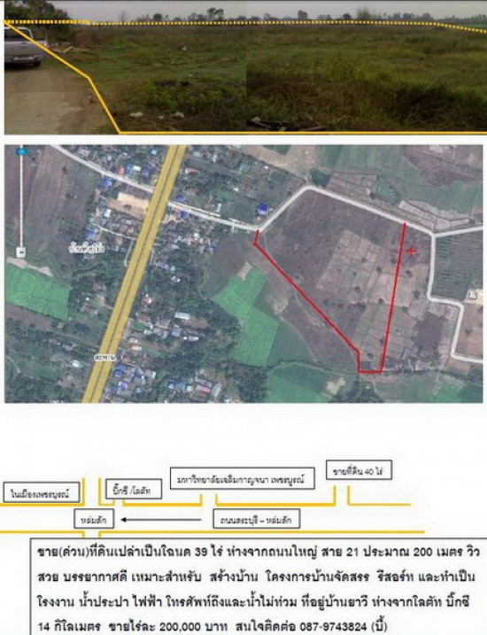 ขาย(ด่วน)ที่ดินเปล่าเป็นโฉนด 39 ไร่ ห่างจากถนนใหญ่ สาย 21 ประมาณ 200 เมตร