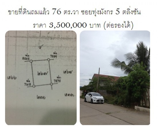 (จากรูปคือพื้นที่ที่รถจอดอยู่) พื้นที่ 76 ตร.วา ราคา 3,500,000 บาท (ราคาต่อรองได้) สนใจติดต่อ เอ๋ 081-924-9987