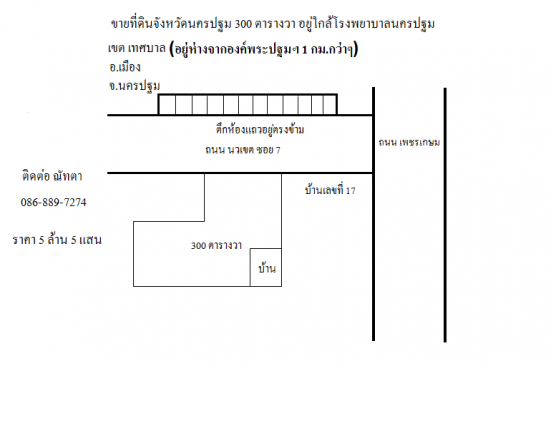 ที่ ดิน 300 ต.ร.ว. อยู่ใกล้โรงพยาบาลนครปฐม ห่างจากองค์พระปฐมเจดีย์ 1 กม. กว่าๆ