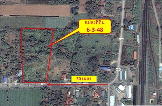 ขายที่ดิน 6-3-48 ไร่ ติดถนนจากสถานีรถไฟบึงพระเพียง 50 เมตร