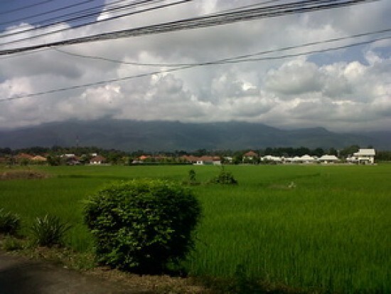 ที่ดินเป็นทุ่งนา ใกล้ม.ดอนแก้ววิลเลจ หน้ากว้างติดถนนคอนกรีต เห็นวิวเขา บรรยากาศดี