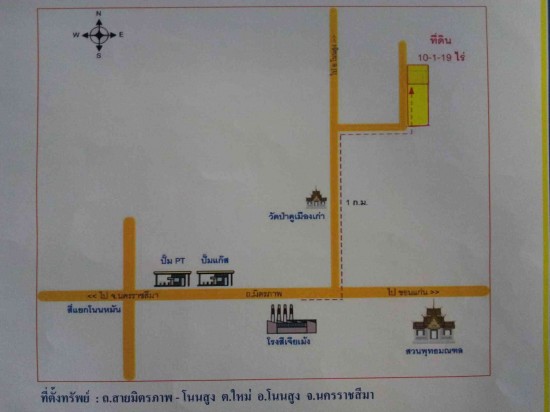 ขายที่ดิน 10-1-19 ไร่ ถ.มิตรภาพ ต.ใหม่ อ.โนนสูง จ.นครราชสีมา ห่างจากถนนมิตรภาพเพียง 1 กม. ที่ดินหน้ายาวถึง 170 เมตร ที่ดินแบ่งเป็น 2 แปลงติดกัน โดยแบ่งเป็น 3 ไร่ และ 7 ไร่ พื้นที่เสมอถนน ไม่ต้องถมเพิ่ม ในอนาคตถนนวงแหวนรอบเมืองตัดผ่านด้านหน้าที่ดิน ซื้อเก็งกำไรไม่ผิดหวัง ซื้อทำโรงงานหรือทำบ้านจัดสรรก็ดี ในละแวกเดียวกันมีโรงสีเจียเม้ง และ โรงงาน Thai beverage