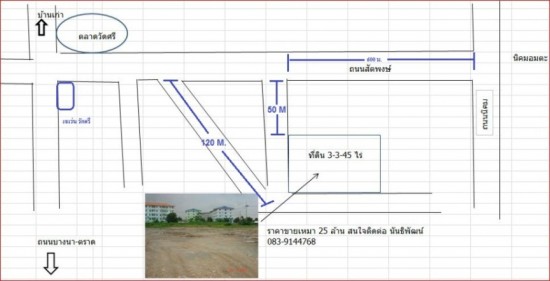 ขายที่ดิน 3-3-45 ไร่ ที่ถมแล้วราคาเหมา 25 ล้าน สนใจติดต่อ นันธิพัฒน์ 083-9144768
