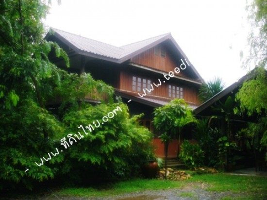 ด้านหน้าติดลูกรังหน้ากว้าง 100 เมตร มีบ้านทรงไทยไม้สัก 2 ชั้น 1 หลัง ชั้นบนมี 2 ห้องนอน 1 ห้องน้ำ
