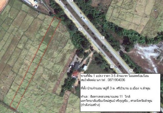 ขายที่ดิน อ.เมืองลำพูน ติดถนนหลวงหมายเลข 11 ( เชียงใหม่-ลำปาง ) แปลงที่2