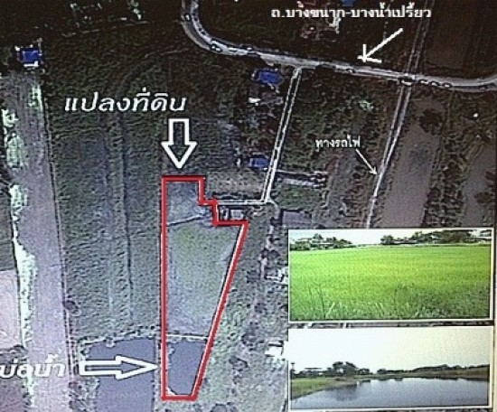 ขายที่ดิน 5 ไร่ ใกล้สถานีรถไฟ อ.บางน้ำเปรี้ยว (ประมาณ 500 เมตร) ไร่ละ 650,000 บาท