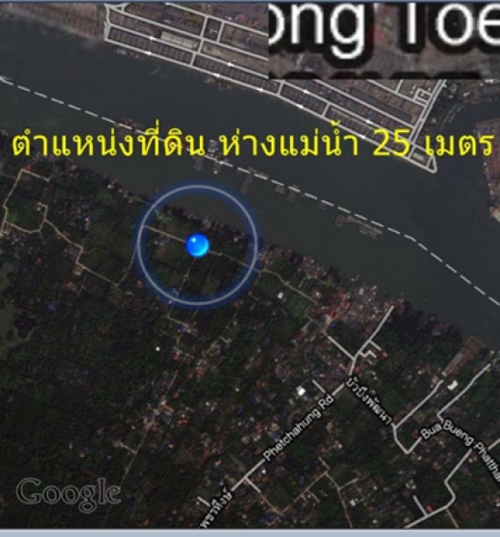 ห่างแม่น้ำเจ้าพระยา 25 เมตร ฝั่งตรงข้ามแม่น้ำเจ้าพระยาเป็นท่าเรือคลองเตย