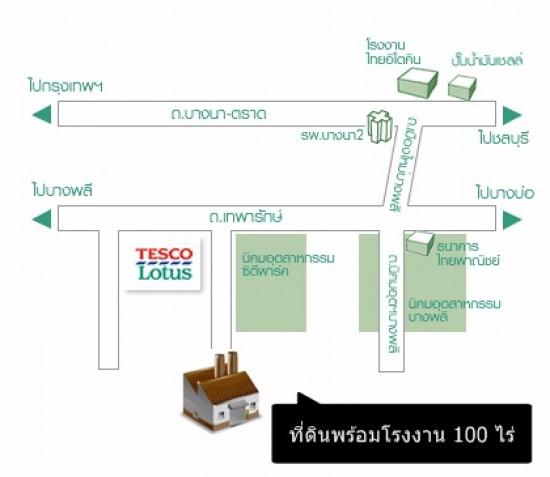 ขาย!!! ที่ดินพร้อมโรงงาน 100 ไร่ ถนนเทพารักษ์ เข้าทางซิตี้พาร์ค บางพลี (โลตัส บางพลี)