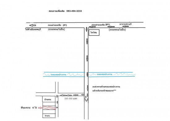 อยู่ห่างตัวเมืองลพบุรีเพียง 5 กม. ถนนน้ำไฟพร้อม ติดคลองชลประทาน(มีน้ำตลอดปี)
