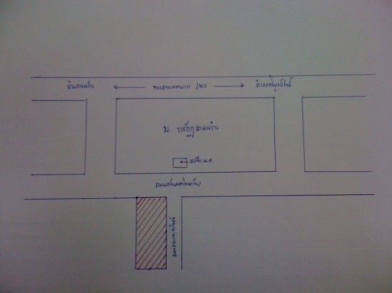 โฉนด ถมแล้ว ติดถนนสองด้านตามแผนที่ เยื้องหอพักนักศึกษา งานละ 450,000 บาท