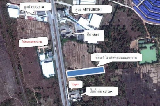 ขายที่ดิน 6 ไร่ หนองคาย ติดถนนมิตรภาพ มีโฉนด