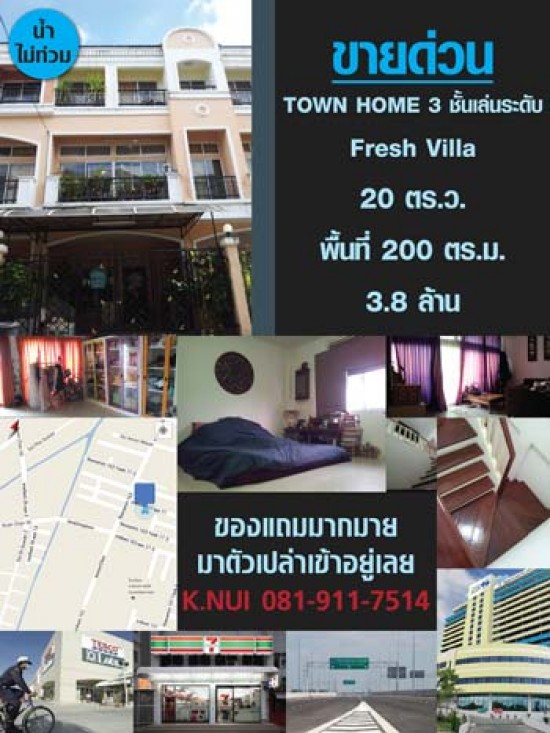 ขายโฮมทาวน์ Fresh Villa นวลจันทร์ 36 น้ำไม่ท่วม หมู่บ้านยกสูง ตกแต่งพร้อมเฟอร์นิเจอร์ เข้าอยู่ได้เลย