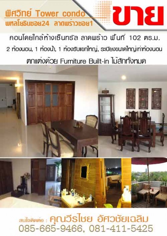 ขายคอนโดใกล้MRT ลาดพร้าว 600 เมตร พิศวิทย์ Tower condo บรรยากาศสงบเงียบ ร่มรื่น ให้ความเป็นส่วนตัว