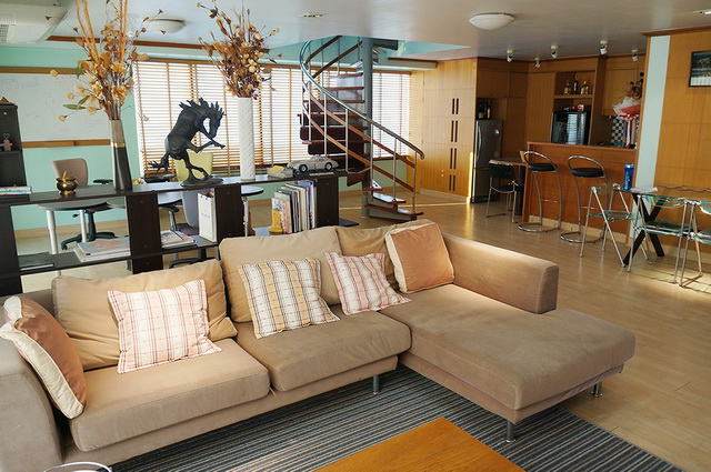 - 1 ห้อง มี 2 ชั้น : 1 ห้องโถง/ห้องนั่งเล่น บาร์ เคาเตอร์ครัว (ชั้น 1) , 3 ห้องนอน (ชั้น 2) , 2 ห้องน้ำ , ระเบียง , บันได