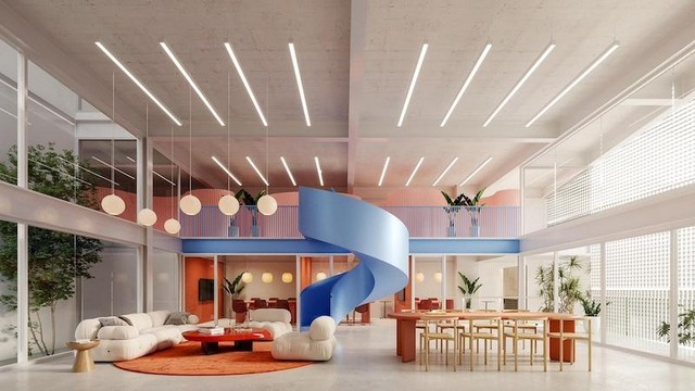 โถง common living area แบบ double volume พร้อมห้องน้ำชั้น 2-4