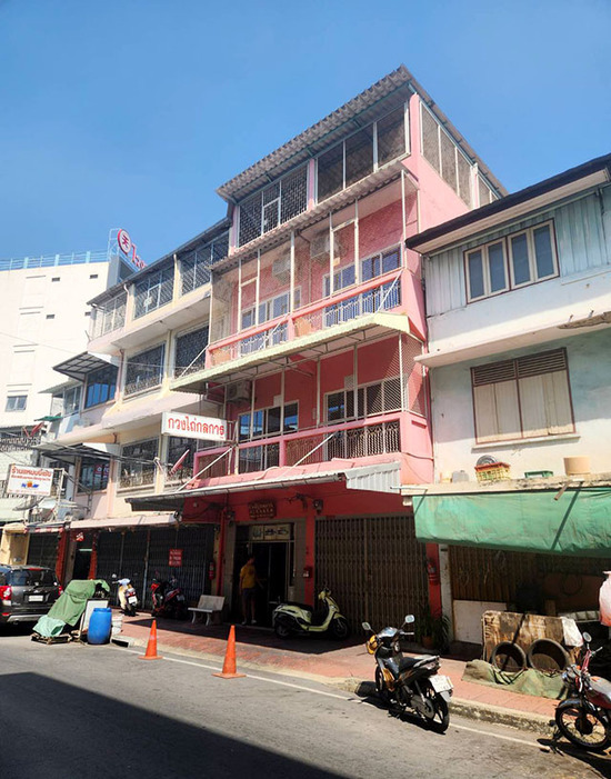 เป็นตึกแถว 4 ชั้น 2 คูหา เนื้อที่ดินรวม 63.1 ตารางวา รวมพื้นที่เพิ่มอีกประมาณ 5 ตรว.