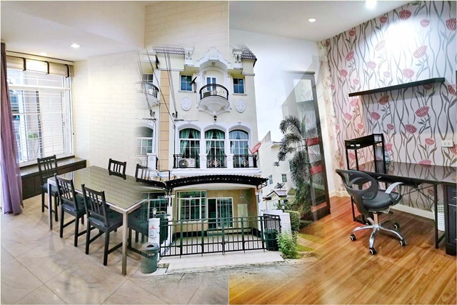 Rama9 Stamford International University 100 m. 3-storey corner townhouse 3bed 3bath 250sq m. 21sq.wa. fully furnished 24,999B-M Phatthanakan Market 1.1 km. shopping area community area convenient transportation APL Huamark 1.9 km. The Metro