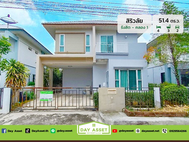 ขายบ้านเดี่ยว 2 ชั้น หมู่บ้าน สิริวลัย (คลอง 1) เนื้อที่ 51.4 ตร.ว. แถม แอร์ 5 เครื่อง พร้อมเฟอร์นิเจอร์ทั้งหลัง ขายเพียง 4,800,000 ล้านบาท