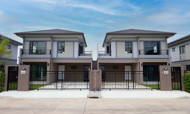 Never Living New twin house 2-storey KhlongSiMueangMai Market 260m. on the main road 3bed 2bath 40sq.wa. 240sq.m. Siam International School 2.8km. 21,999B-M spacious house airy comfortable 2a/c Market Village Rangsit 2.2km.convenient to travel in and out.