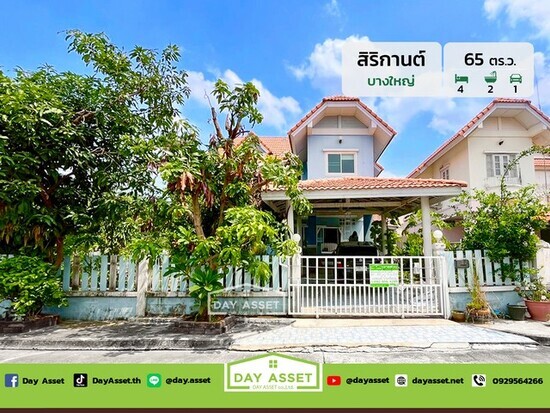 ขายบ้านเดี่ยว 2 ชั้น หมู่บ้าน สิริกานต์ บางใหญ่ : Sirikan Bangyai ใกล้รถไฟฟ้าสายสีม่วง เนื้อที่ 65 ตร.ว. ขายเพียง 3,490,000 ล้านบาท