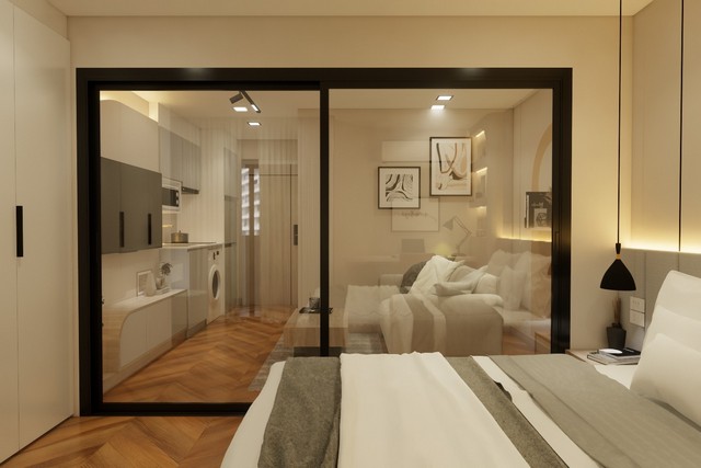 พื้นที่ 30 ตรม. กั้นห้องนอน แบ่งสัดส่วน สะดวก มีระเบียง