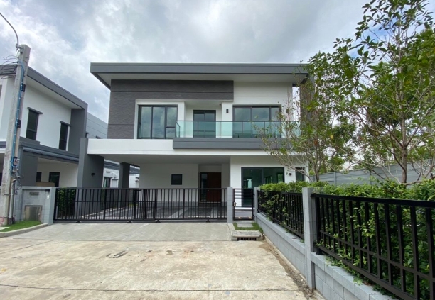 บ้านเดี่ยว 2 ชั้น (แปลงมุม) ขนาดที่ดิน 68 ตารางวา พื้นที่ใช้สอย 252 ตารางเมตร 4 ห้องนอน / 5 ห้องน้ำ ที่จอดรถ 3 คัน บ้านอยู่ทางทิศเหนือ