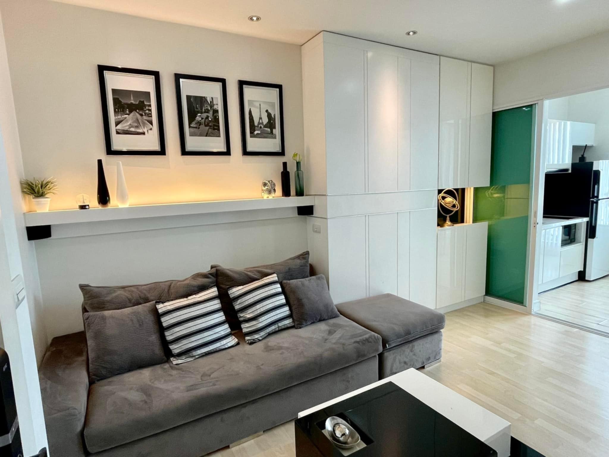 – เฟอนิเจอร์บิ้วอินไฮกลอสทั้งห้อง คุมโทนขาวดำ