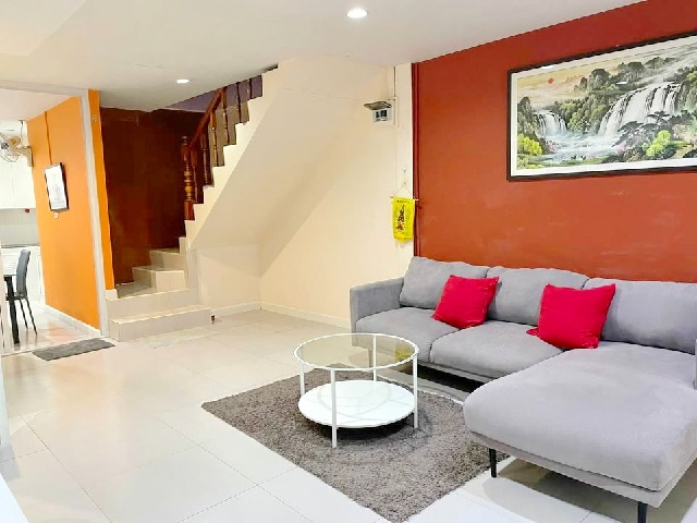 North Bangkok Village 4.4 km.2 bed MRT Watcharapol 2.5 km. For sale-rent 2-storey townhouse 19sq.wa. 149 sq.m. 2 bath decorated built-in with furniture 14,998 B-M selling for 2.5 million Plenary Mall 1.4 km.shopping area community area